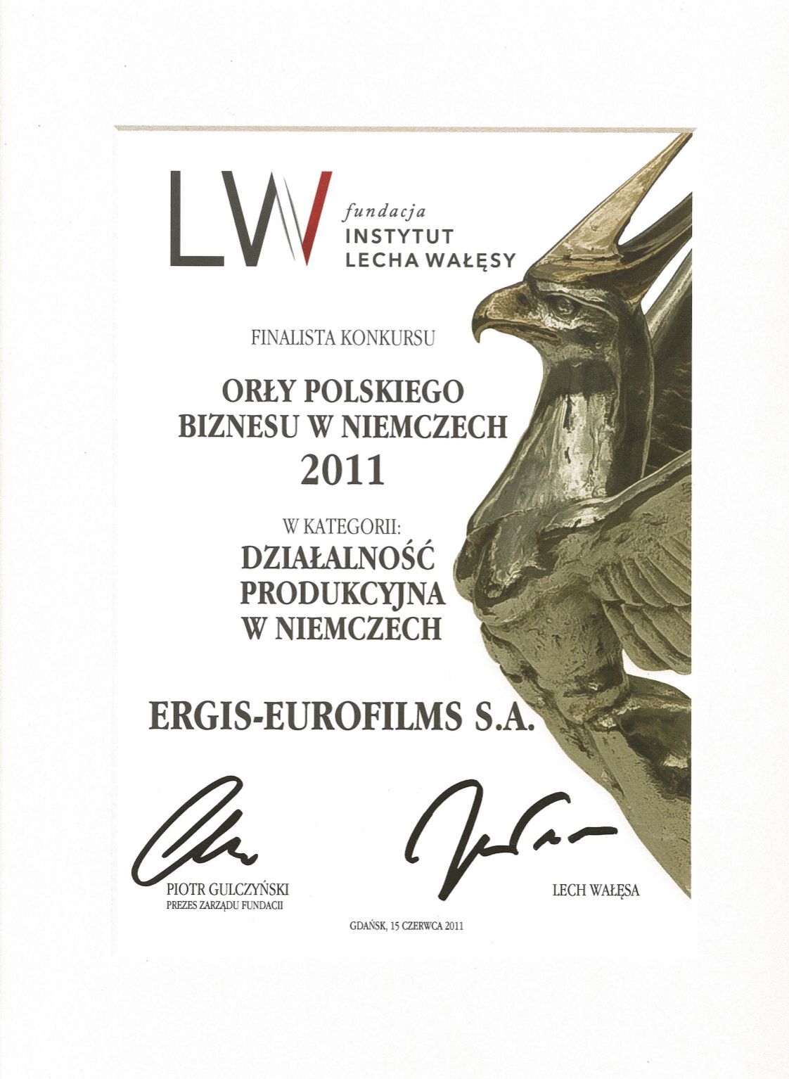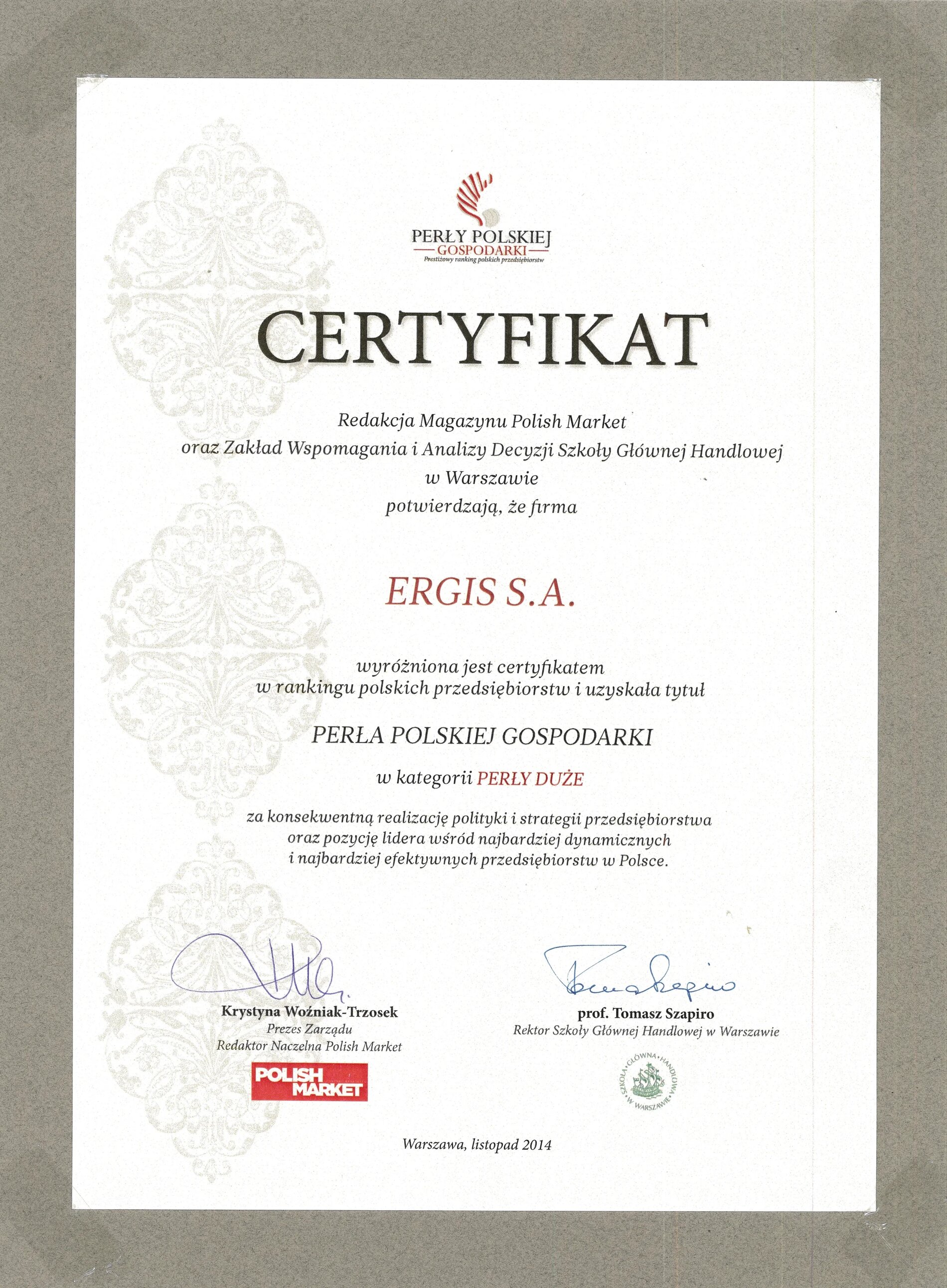 Grupa ERGIS, środkowoeuropejski lider w przetwórstwie tworzyw sztucznych, ma w swoim dorobku wiele wyróżnień i nagród. Możemy pochwalić się certyfikatami jakości według norm ISO 9001: 2000 i ISO 14001:2004, ISO 22000, ISO 50001, certyfikatami BRC ale także wyróżnieniami i nagrodami oraz wysokimi miejscami w rankingach organizowanych przez znaczące na rynku czasopisma i organizacje. Doceniany jest przede wszystkim dynamizm firmy, jakość wyrobów oraz podejście do pracownika.
