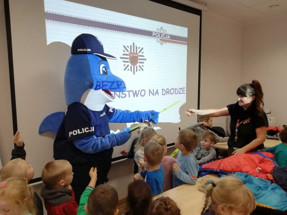 - Pierwsza grupa wąbrzeskich maluchów dostała kamizelki i opaski odblaskowe, a wręczała je nowa policyjna maskotka o imieniu Polfin, której rolą będzie promowanie bezpieczeństwa ruchu na drodze.