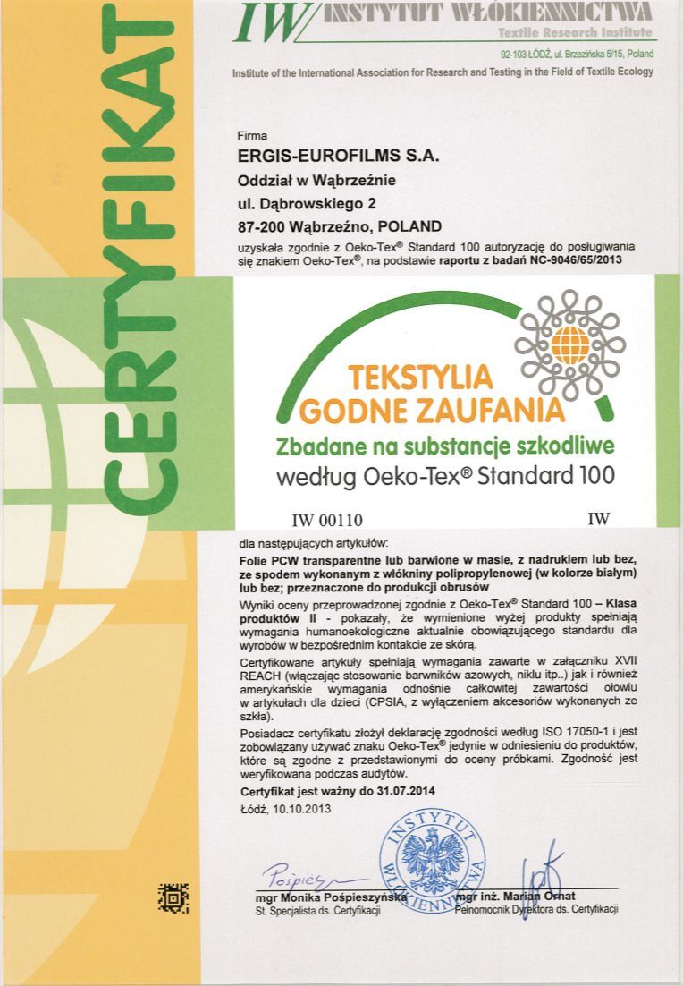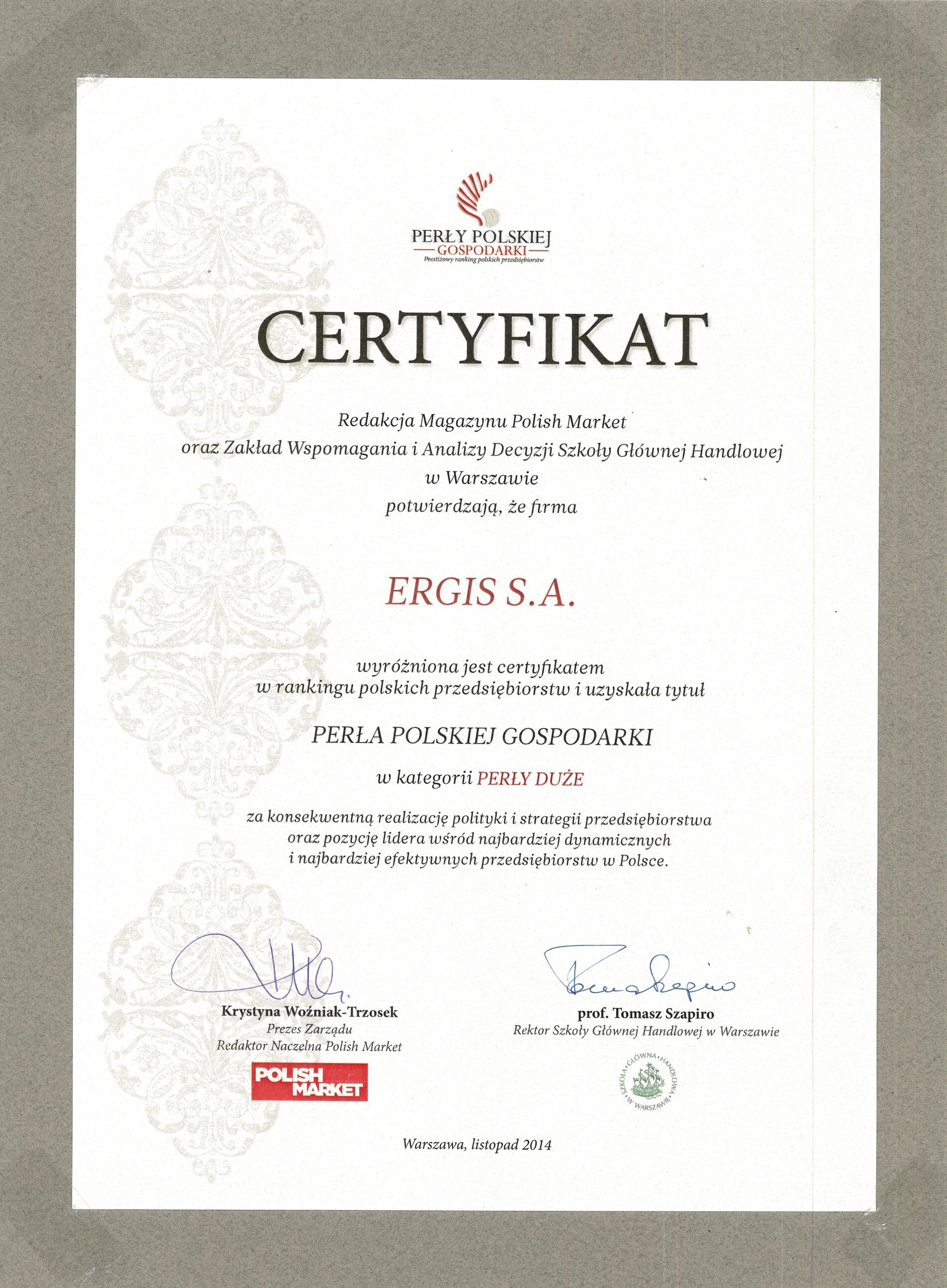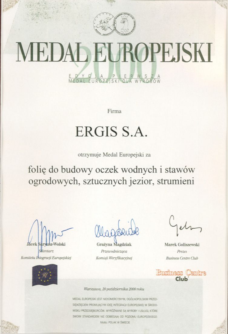 The ERGIS GROUP, a leader in plastics processing in Central Europe, has been granted numerous awards and obtained a number of certificates. We are proud of our ISO 9001:2000, ISO 14001:2004, ISO 22000 and ISO 50001 quality certificates, as well as BRC certificates and many awards and high positions in different ratings compiled by magazines and organizations of high market significance. The Company’s dynamism, quality of products and attitude toward the employees are widely appreciated.