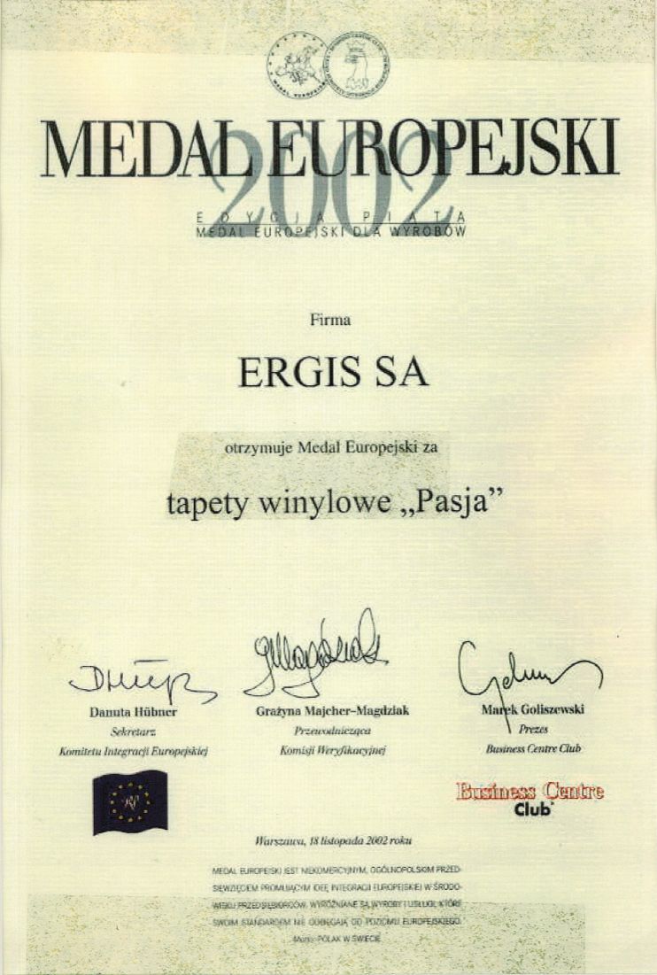 Flexergis Sp. z o.o., a company belonging to the ERGIS GROUP, has become a laureate of the EU Standard 2008 programme. High and European quality of products, dynamic expansion through investing in modern technologies as well as the effective use of EU subsidies proved to be decisive for the evaluation of the company (01/04/2008).