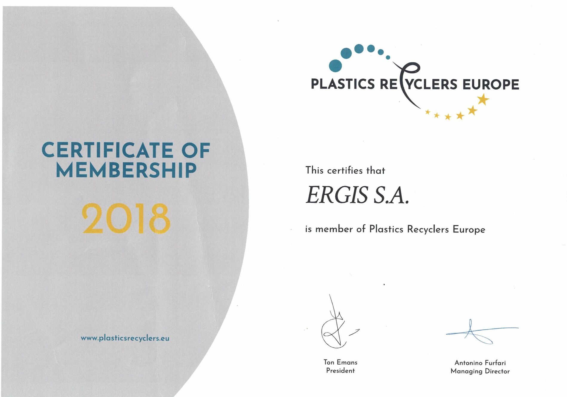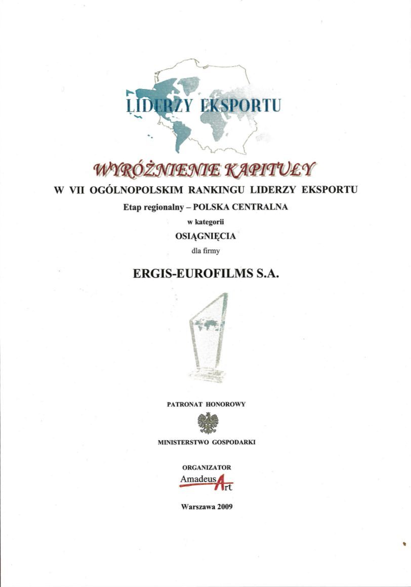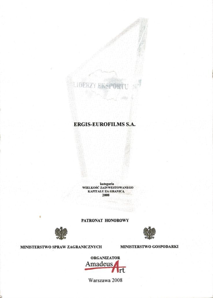 La Société Flexergis, qui appartient au GROUPE ERGIS, a été lauréat du programme EU Standard 2008. Pour le classement, ce qui joue le rôle le plus important ce sont : la qualité européenne des produits, le développement dynamique de l'entreprise qui investit dans les technologies modernes, ainsi que l'utilisation efficace des dotations de l'Union Européenne (01/04/2008).